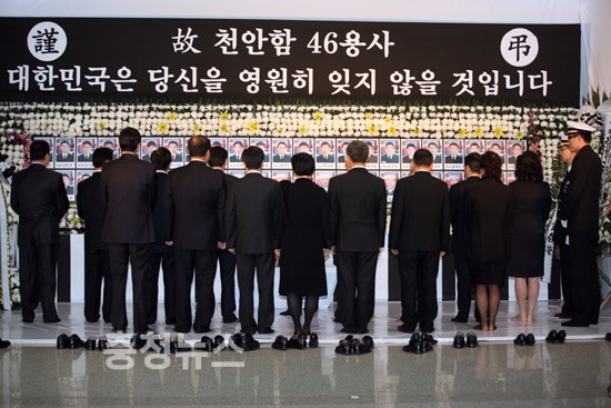 대전시청 1층에 마련된 [천안함 46용사 합동분향소]헌화 조문
