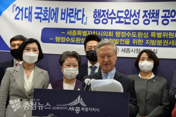 한편, ‘세종특별자치시의회 행정수도완성 특별위원회’와‘행정수도완성과 국가균형발전을 위한 지방분권세종회의’는 지난 3월 30일, 총선전 각 정당 및 후보자에게 국가균형발전을 선도하기 위한 행정수도 완성 정책공약을 제안한 바 있다.