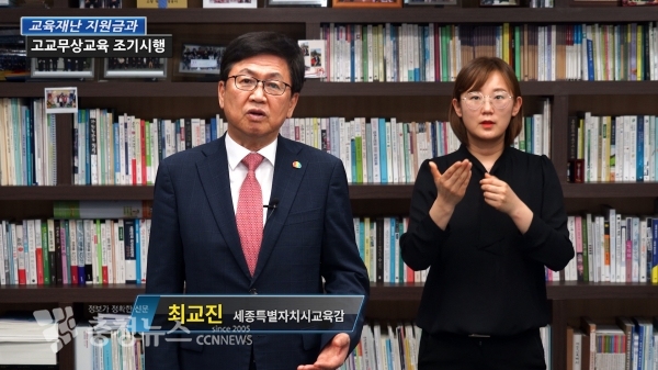 최교진 교육감은 1일 “무상교육은 가정환경, 계층 등과 관계없이 모든 학생들에게 평등한 교육기회를 제공하여 헌법이 보장하는 교육기본권을 실현하기 위한 것이다”며, “세종시의 모든 아이들이 안심하고 배움을 즐기며 학교에 다닐 수 있길 바란다”고 말했다.