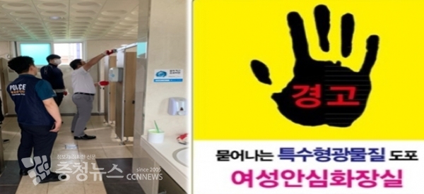 특히, 태안경찰서 범죄예방진단팀은 시범적으로 만리포 여성 공중화장실 각 칸막이에 특수형광물질을 도포하는 등 불법촬영 범죄를 예방할 수 있도록 지난 2일 작업을 완료하였다.