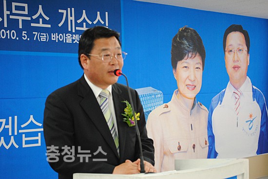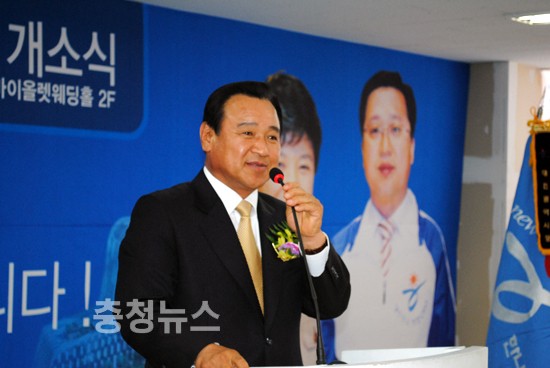 한나라당 이장우 대전 동구청장 후보가 7일 오후 5시 동구 원동 ‘바이올렛웨딩홀’ 2층 선거사무소에서 대규모 개소식을 갖고 기선잡기에 나섰다.