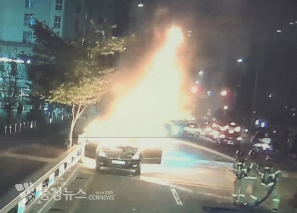 9일 저녁 8시 31분경 세종시 도담동 801동 앞 도로상에서 카니발 차량에 화재가 발생했다.