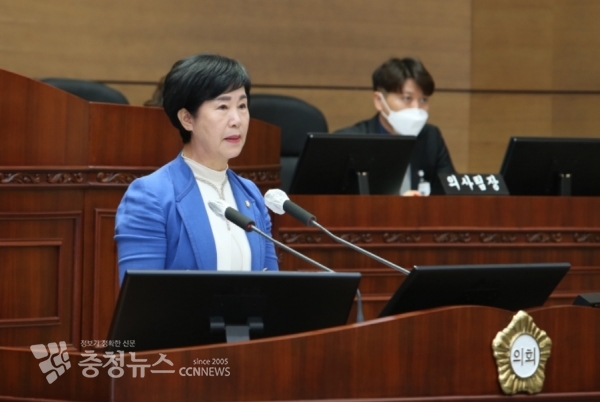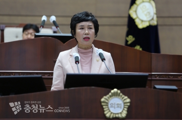 ▲ 이교희 의원은 하수종말처리장 시설 현대화 사업과 관련하여 시설현대화가 이루어지고 난 후에 풋살장이나 게이트볼, 피크닉장 등 시민을 위한 여가· 휴식 공간을 만드는 것을 제안했다. 또한, 하수종말처리장 현대화 사업을 민간투자사업으로 추진하는 것에 대해 천안시가 전 과정을 주도 할 수 있는 방법을 모색할 것을 요청했다.