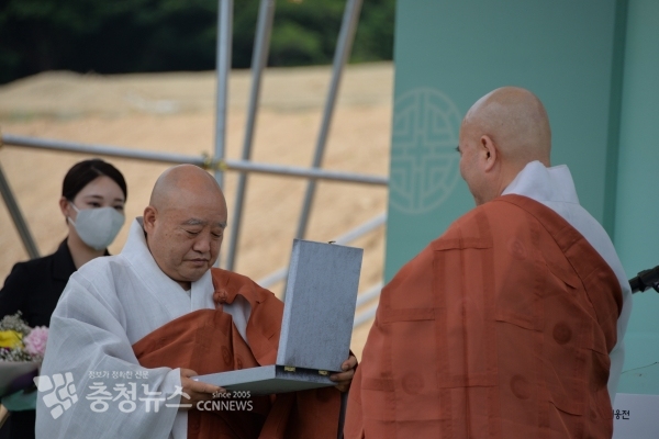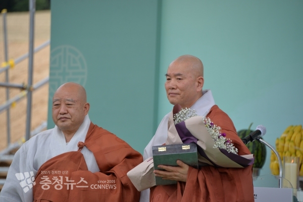 세종시불교사암연합회 회장인 영평사 환성 주지스님은 17일 전월산에서 열린 한국불교문화체험관과 광제사 대웅전 착공식에서 조계종 총무원장 원행 스님으로부터 표창패를 받았다.