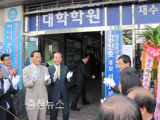 지난 13일 후보등록을 마치고 본격 선거전에 뛰어든 김신호 현 대전광역시교육감이 17일 오후 대전서구 둔산동 선거사무소 에서 개소식을 열고 자신의 선대본부 발표와 대전교육발전을 위한 비전을 제시했다.