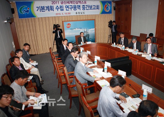 충남도는 18일 도청 영상회의실에서 이인화 도지사 권한대행 주재로 양창엽 금산군수 권한대행, 정강환 배재대 교수 등 관계 전문가들이 참석한 가운데,「2011금산세계인삼엑스포기본계획」수립 연구용역 2차 중간보고회를 갖고 관계실무 협의를 가졌다.