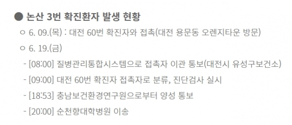 충남 논산시에서 3번째 코로나19 확진자가 발생했다.