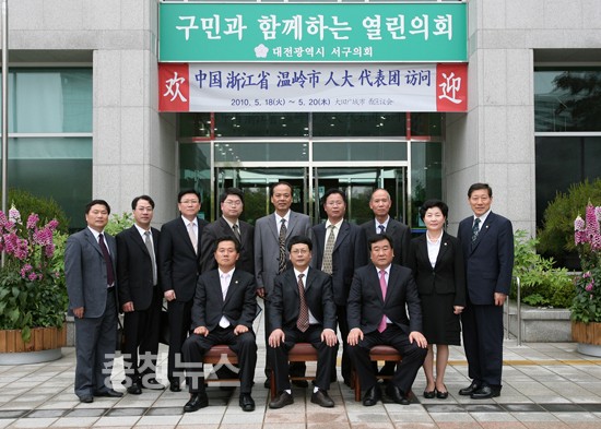 대전 서구의회(의장 이광복)는 18일 오후에 우호협력도시인 중국 절강성 온령시 인민대표 상임위원회 대표단(단장 챠우샹핑 등 6명)을 접견하고 문화교류 등 양도시간 상호 발전방안에 대한 의견을 교환했다.