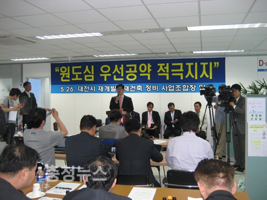대전시 재개발․재건축 정비사업조합 조합장 17명 일동은 26일 오후 한나라당 박성효 대전광역시장 후보사무소에서 긴급 기자회견을 열었다.