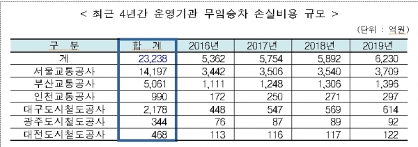 2025년 초고령화 사회 진입을 앞두고 6개 도시철도 운영기관은 재정적 어려움이 가중되고 있는 상황이다. 노인 무임승차 증가 등으로 최근 4년간 연평균 약 5810억 원의 무임승차비용이 발생했다.