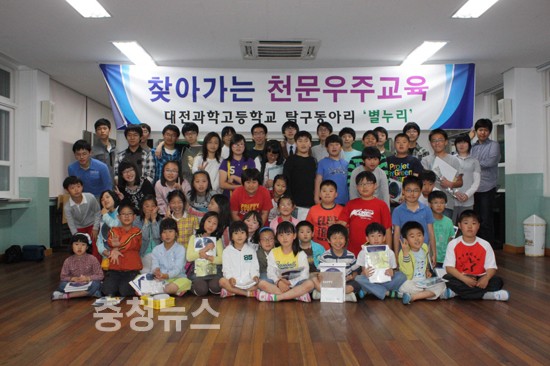 대전과학고등학교(교장 박찬승) 탐구동아리 별누리 학생들(총 15명)이 과학고에서 배우고 탐구한 천체관련 지식을 지역사회와 공유하기 위한 체험봉사활동의 일환으로 실시하는 「찾아가는 천문․우주 교육」을 26일 야간에 장동초등학교를 대상으로 실시하였다고 밝혔다.