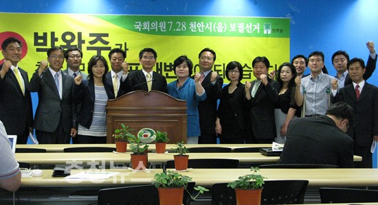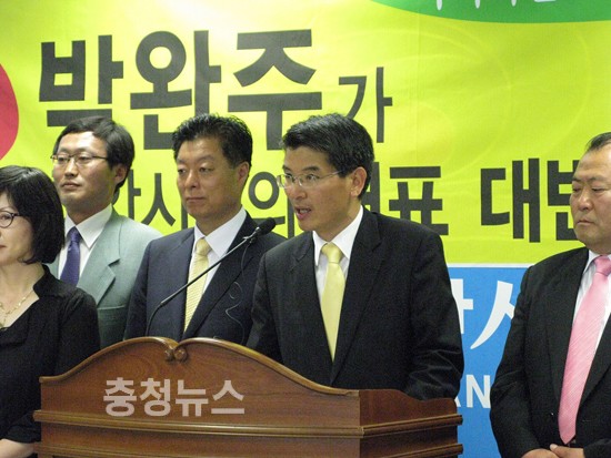 민주당 충남도당 박완주 대변인(44세, 민주당 충남 천안시을 지역위원장)은 7일 오전 천안시청 기자회견실에서 6.2.지방선거에서 당선된 천안출신 충남도의원과 천안시의원 전원이 참석한 가운데, 천안시을 7.28 국회의원 보궐선거 출마를 공식 선언했다.
