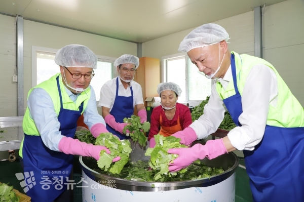 농가주부모임 시·군 회원 및 충남농협 임직원 등 30여명이 참여해 진행된 이날 행사에는 소외계층 3백여 가구에 전달될 신선하고 맛있는 열무김치가 만들어져 충남관내 취약계층 가정에 전달됐다.