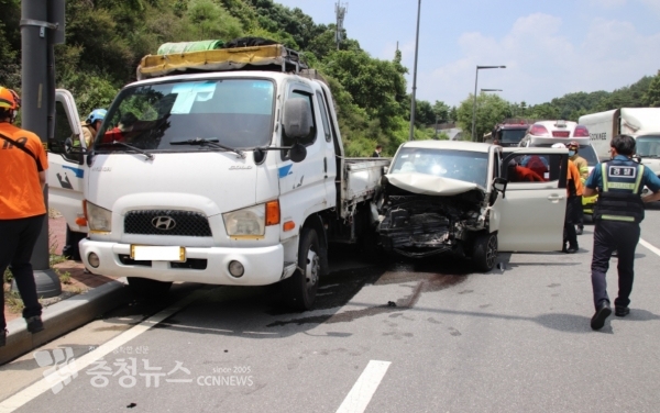 경찰과 소방 당국은 은하수공원 삼거리에서 유턴하던 중 맞은편 도로에서 주행하던 차량과 추돌하여 사고가 난 것으로 보고 정확한 사고 원인을 조사 중이다.