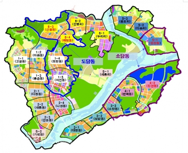 이번에 설치되는 해밀동과 산울동은 인접한 도담동에서, 집현동과 합강동은 인접한 소담동에서 관할하게 된다.