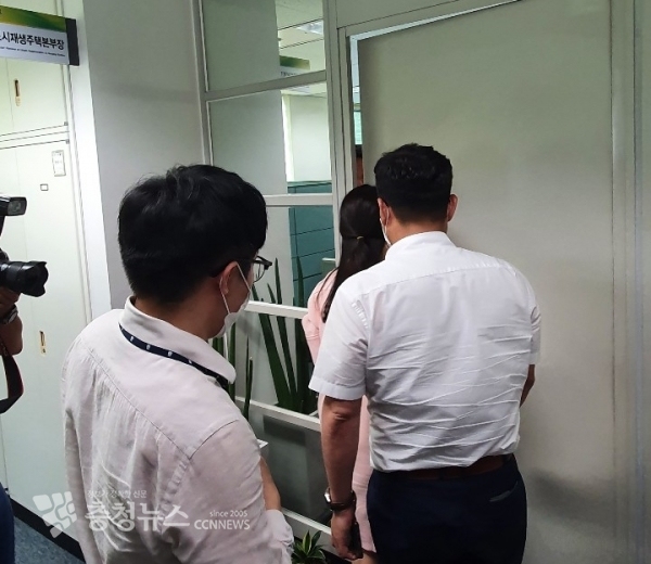 [사진] 기자들을 피해 대전시 도시재생주택본부장실 들어가는 검찰 수사관