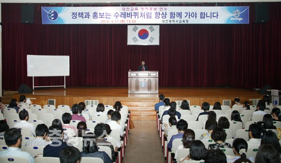 대전시교육청(교육감 김신호)은 교육정책홍보 및 언론에 대한 정확한 이해를 통해 교직원의 홍보 마인드를 높이고 교육정책을 성공적으로 이끌어내기 위한 방향을 모색하기 위해 「2010년도 대전교육 정책홍보 연수」를 개최했다.