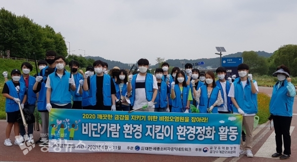 (사)대전세종소비자공익네트워크(회장 도정자)는 18일-19일 양일에 걸쳐 금강유역환경청(청장 박하준) 후원으로 유등천일대에서 깨끗한 금강을 지키기 위하여 30여명이 하천청화 쓰레기 수거 작업을 실시했다.