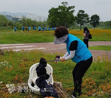 이 행사 장마비로 인하여 플라스틱병, 농약병 등 많은 양의 부유물이 있어 환경정화봉사자들은 더 많은 구슬 땀을 흘렸다.