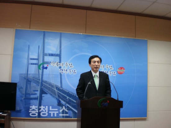 안희정 당선자측 박병남 대변인과  세종시 원안사수 현안위원회 행복도시 특별위원회 박수현 위원장은 24일 오전 도청기자실에서 입장표명의 시간을 가졌다.