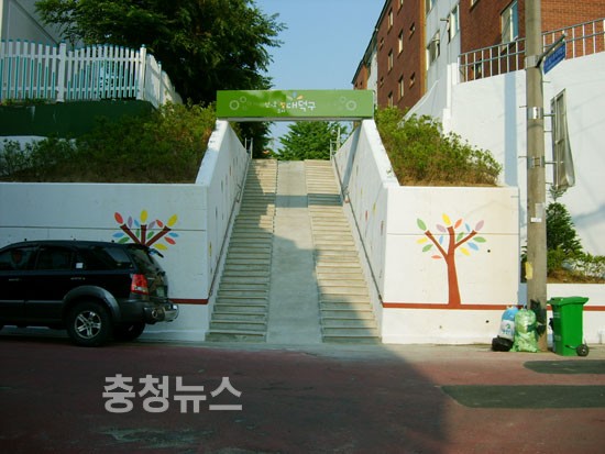 대전 대덕구(구청장 정용기)가 중리동 영진빌라 옆 주변 지역의 열악한 보행환경을 개선하기 위한 보행계단을 신설, 기존의 옹벽담장에 벽화도색 작업을 하여 주민들로부터 많은 호응을 얻고 있다.