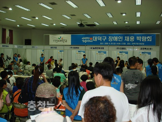 대덕구(구청장 정용기)는 8일 오후 2시 구청 대강당에서 관내 23개 사업체가 참여한 가운데“제3회 해피투게더 대덕구 장애인 채용박람회”를 개최한다고 밝혔다.