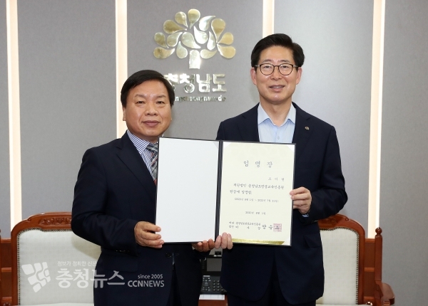 양승조 지사로부터 임명장을 받은 조이현 원장은 오는 2022년 7월 31일까지 2년 동안 충남평생교육진흥원 업무를 총괄하게 된다.