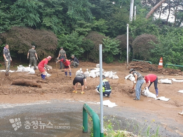육군 제3585부대 1대대는 성남면 우렁농가, 육군 제3탄약창은 부성2동 구거 범람으로 인한 침수피해 현장, 공군 유도탄여단은 부성1동 가구매장과 홍삼보관창고에서 대민지원 활동을 펼쳤다.
