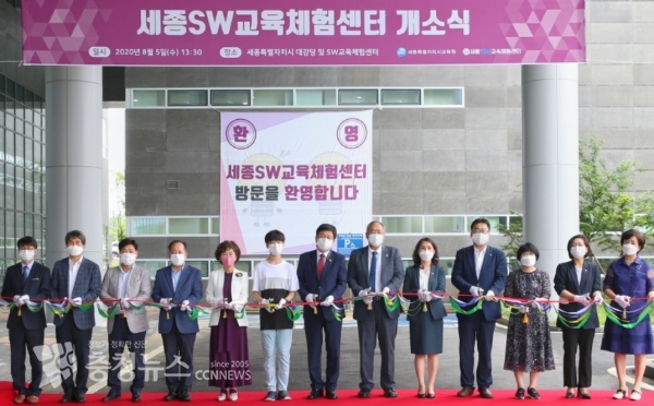 세종교육원은 5일 원내에서 최교진 세종시교육감, 조상호 세종시경제부시장, 이윤희 세종시의회 부의장, 박성수 세종시의회 교육안전 위원장, 박용희ㆍ이순열 세종시의원, 교직원 등 약 80여 명이 참석한 가운데 세종SW교육체험센터 개소식을 가졌다.