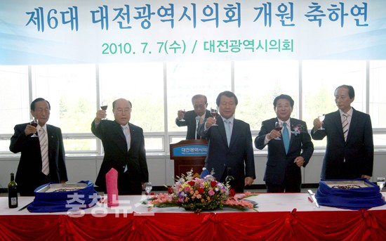 민선 5기 출범에 맞춰 대전시를 견제할 제6대 의회가 7일 대전시의회에서 개원식을 갖고 본격적인 의정활동에 돌입했다.