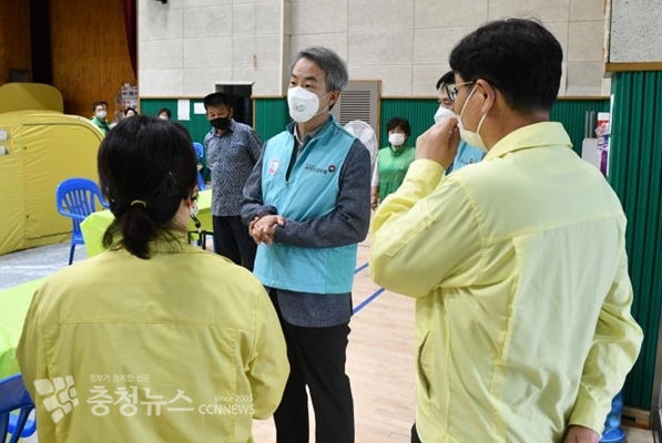 음성군의 이재민 대피시설을 방문해 구호물품과 생필품 전달
