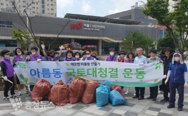 이날 참가자들은 아름동 행정복지센터 일원과 주요 도로변을 중심으로 쓰레기 수거와 잡풀제거 등 환경정화활동을 실시해 지역 주민들에게 쾌적한 주거 환경을 제공했다.