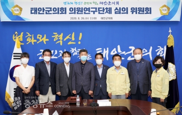 26일 군의회 본관 1층 간담회실에서 신경철 의장을 비롯한 심의의원 및 의원연구단체 대표 등이 참석한 가운데 ‘태안군의회 의원연구단체 심의위원회’를 열고 2건의 연구단체 등록 안건을 심의했다고 밝혔다.
