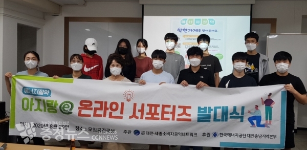 (사)대전세종소비자공익네트워크(회장 도정자)는 29일 한국에너지공단 대전충남지역본부(본부장 최창기) 협력 사업의 일환으로 모임공간국보 회의실에서 아지랑E(아끼자·지키자·사랑하자 ·energy) 온라인 서포터즈 발대식을 개최했다.