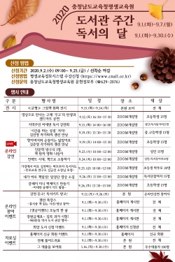 충남도교육청 평생교육원이 9월 한달간 독서의 달을 운영하고 참가자를 모집한다.