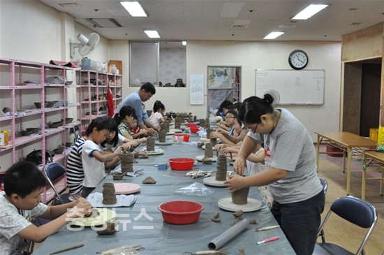 도마동 센터의 도예 교실은 무공해 천연점토를 이용해 컵, 화병 등을 세상에 하나밖에 없는 나만의 작품으로 만들어 보고, 법동 동부센터의 홈베이킹교실과 대성동 남부센터의 웰빙쿠키만들기 교실은 부모와 함께 다양한 빵과 간식(쿠키) 등을 만드는 과정으로 인기가 높아 불별 더위를 잊고 수업이 진행중이다.