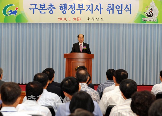 충청남도 구본충(具本忠, 54) 행정부지사의 취임식이 9일 오전 도청 대회의실에서 있었다.