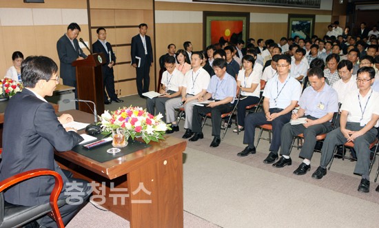 충청남도 안희정 지사는 11일 오전 국내 철강산업의 메카, 환황해권 중심지인 당진군을 방문, 공무원 및 주민과의 대화를 통한 현장의 목소리를 듣는 시간을 가졌다.