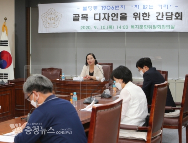 천안시의회 김선홍 의원은 10일 복지문화위원회 회의실에서 ‘차없는 거리 골목디자인’을 위한 간담회를 가졌다.