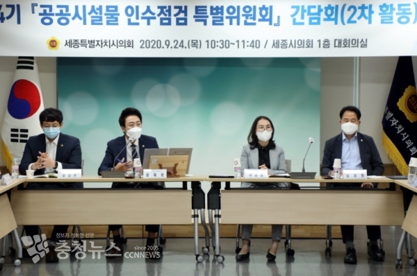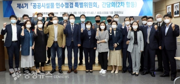 세종특별자치시의회(의장 이태환) 제4기 공공시설물 인수점검 특별위원회(위원장 임채성)는 24일 의회청사 대회의실에서 시민참여특별점검반과 함께 하는 간담회를 열었다.