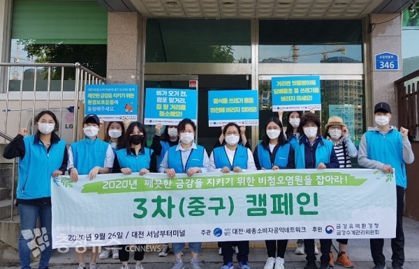 (사)대전세종소비자공익네트워크(회장 도정자)는 금강유역환경청(청장 박하준)의 후원을 받아 26일(토) ‘깨끗한 금강을 지키기 위한 비점오염원을 잡아라! 3차 홍보 캠페인’을 개최했다.