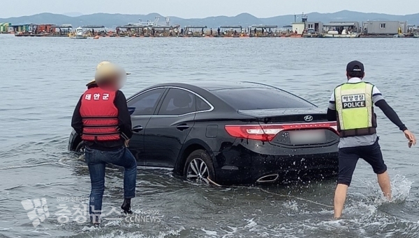 추석연휴인 2일 금요일 오후 3~4시 사이 충남 태안군 고남면 구매항과 영목항 물양장에 주차됐던 차량 2대가 태안해경 구난조치로 침수피해를 가까스로 모면했다.