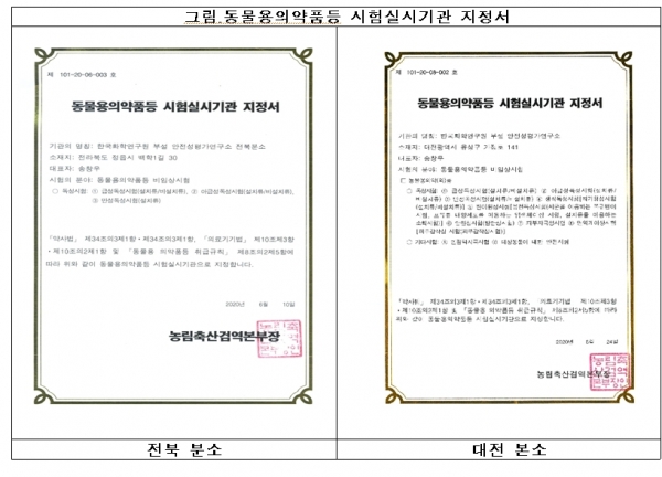 동물용의약품 시험기관으로 ‘대전 본소·전북 분소 동시인증’ 쾌거