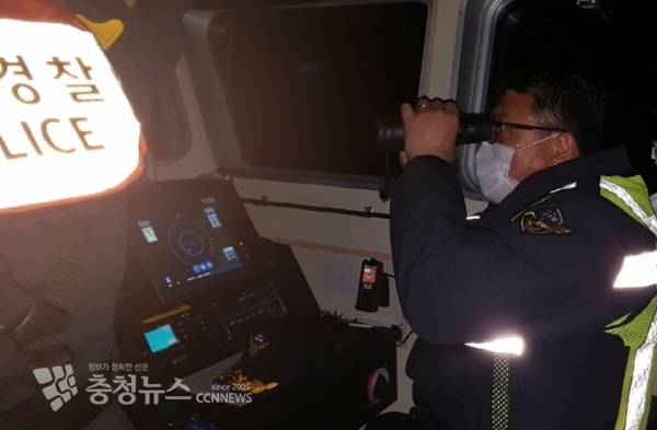 야간 해상순찰에 나선 윤태연 태안해경 서장