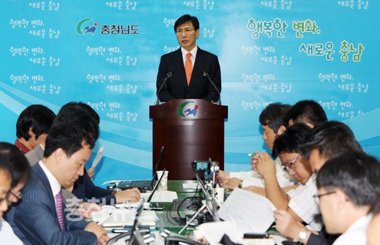 충청남도 안희정 지사는 16일 오전 도청에서 기자회견을 열고 추석전 태풍피해 지역 생활안정자금을 긴급 지원 한다고 밝혔다.