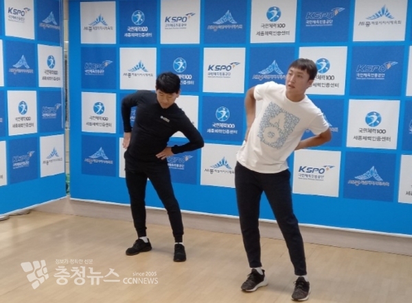 또, 이날 오후에는 세종시청 테니스팀 손지훈 선수(국내 남자단식 랭킹 7위)가 화상회의 앱을 활용해 시민을 대상으로 실내에서도 간단하게 할 수 있는 근력운동 동작을 소개했다.