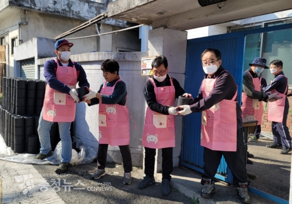 유등노인복지관과 대전제일감리교회는 17일 따뜻하고 행복한 세상을 만드는 겨울나기 행사인 ‘사랑의 연탄나누기’ 봉사활동을 펼쳤다.
