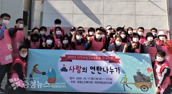 대전제일감리교회는 매년 어려운 가정에 생필품 지원을 하고 밥퍼 행사를 진행하는 등의 꾸준한 선행과 지역사회에 기여하는 봉사활동을 해왔으며 올해에도 유등노인복지관을 통해 어려운 가구에 연탄을 기부했다.
