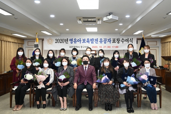 대전 중구의회(의장 김연수)는 27일 본회의장에서 영유아 보육발전 유공자들에게 표창을 수여했다고 밝혔다.