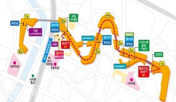 또한, 관람 동선의 혼잡도를 낮추기 위하여 순차적으로 거리두기(10명 이하, 2m 거리두기)를 준수하여 입장하게 된다.